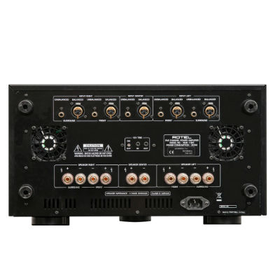 Rotel RMB-1585 5-канальный усилитель мощности аналогового АВ класса для апгрейда кинотеатрального ресивера . Rotel обеспечивает минимальную отдачу в 200 ват на канал при 8 омной нагрузке . Однако на всьом диапазоне гарантировано непревышение общих искажений гармоническких ( THD) выше чем 0,03 % . Демпинг фактор в 260 единиц . Вес RMB-1555 почти 40 кг . Потребление не превышает 800 ват от электросети . Если установить в 19 дюймовую стойку то больше 5 юнитов не займет , а на обычной полке потребует 24 см высоти ( без учета вент зазора ) .