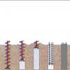 Технология буроинъекционных свай заключается в том что с помощью специализированной установки бурят грунт, после чего во время изъятия бура заливають бетон з присадками . Как только процесс завершен с помощью вибратора в залитый бетон погружают стальной сваренный цельный каркас . Реккомендовано для мокрых и ослабленных грунтов . Максимальная практическая глубина обустройства до 32 метров . Предлагается несколько вариантов диаметров свай 400 , 600 , 800 и 1000 мм .