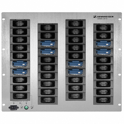 Sennheiser L 2021-40 — зарядний рек на 40 приймачів синхроперекладу спеціально розроблено для стаціонарного монтажу у конференц залах, музеях, виставках. За його допомогою можливо швидко (2,5 години) перезарядити до 40 приймачів. До того ж, через порт Ethernet, можливо налаштувати всі приймачі на потрібний канал з Вашого ПК. До 125 таких реків Sennheiser можливо так програмувати з одного ПК (сумарно до 5000 приймачів). Програмне забезпечення в комплекті. Споживання до 150 ват. Габарити 483 x 399 x 172 мм, вага 9 кг.
