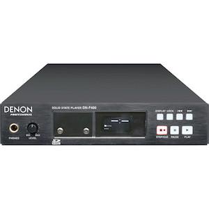 Denon Professional DN-F400 компактний програвач фонового озвучення комерційного класу ( 24/7 ) з функцією автоматичного старту ( в комбінації з електричним таймером ) , зациклення та перемішування треків . Відтворення відбувається з слота під карту SD . Відтворює wav та mp3 файли або m3u плейлисти . Праграматично облаштовано так що карточкоприймач закривається кришкою яку закручено двома гвинтами для уникнення непорозумінь через самодіяльність персоналу . Великі інтуітивні клавіші керування . Підключається до систем керування через RS232 . До програвача можливо придбати настінний пульт Denon F400S з цікавою особливісттю - на ньому винесено клавіші прямого виклику спецефектів звучання : наприклад необхідно в певний момент відтворити ефект "фанфари" або записане оголошення , вожний "мессадж" програмується під пряму клавішу . Пульт оснащено дисплеем .