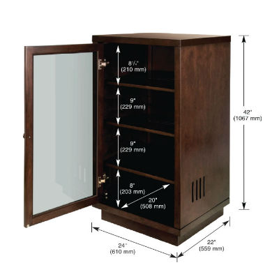 Bello ATC 402 закрита тумба для Hi-Fi апаратури для класичного інтерєру з прозорою дверкою . Габарити шпонованої стійки Bello становлять у висоту 107 см , у глибину 56 см , шириною 61 см . Навантажити кожну полицю допустимо до 23 кг . Верхня стільниця здатна витримати 34 кг . Для складання не потребує інструменту .