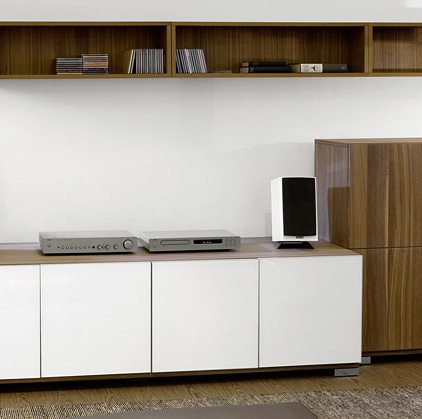 Dynaudio SF1 компактна підставка під центральну акустичну систему для домашнього кінотеатру для того щоб змінити кут під яким встановлено центральну акустичну систему на полиці або для встановлення полочних акустичних систем на низьку полку . Виготовлена з металу .