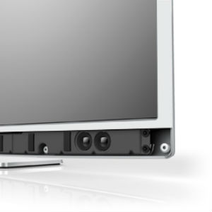 Loewe ART 55 дюймів або 140 см UltraHD телевізор на LED підсвітці у срібному , білому або чорному алюмінієвому корпусі з реально потужним аудіо 40вт ( на рівні початкових саудбарів ) незважаючи на 5.5 см товщину корпусу .